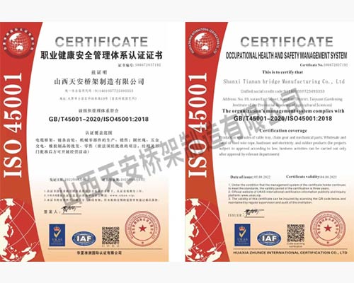 山西天安橋架制造有限公司是一家生產電纜橋架、母線槽的大型廠家,主要生產:槽式橋架、托盤式橋架、梯級式橋架、大跨距橋架、母線槽有空氣型、密集型、耐火型、鋁合金等以及通風管、可根據客戶要求定制各種型號各種規(guī)格,表面處理有熱鍍鋅、防火噴塑、防火漆、熱鍍鋅等,產品廣泛應用于石油、化工、治金、電力、紡織、通訊、高層建筑等各個領域。產品具有外形美觀,耐腐蝕性強,安裝靈活方便,品種齊全等特點。